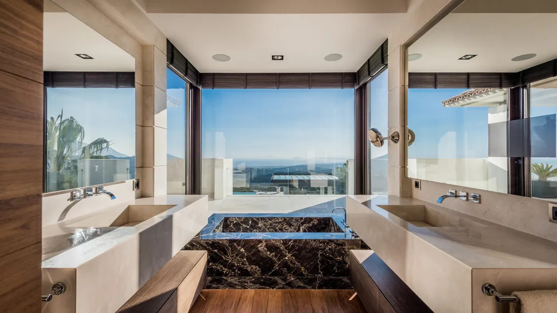 Spanning an expansive 1,925 square meters, this architectural masterpiece stands majestically on a vast 6,654 square meter lot, offering unrivaled space and opulence. From the moment you arrive, prepare to be enchanted by sweeping vistas that stretch across the Mediterranean coastline, with the alluring silhouettes of Gibraltar and Africa on the horizon.
